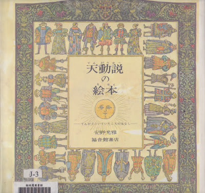 譬如:安野光雅的《天動說》使用某些中世紀藝術的形式。這些圖只是模糊有中世紀的感覺;它們一邊有邊框,還有一些看起來像中世紀織錦畫的樹;但另一方面它們也表現出安野一貫的混搭原始美國和傳統日本,結合葛飾北齋和摩斯奶奶的特色。對中世紀的人來說,中世紀藝術是當代藝術,裝飾不會畫在看起來有一百多年的歷史的紙上。安野藉著創造出我們今天觀看中世紀裝飾的感覺,喚起他想要的氛圍,就像許多插畫喚起不同時代和文化的風格一樣。(P.147)