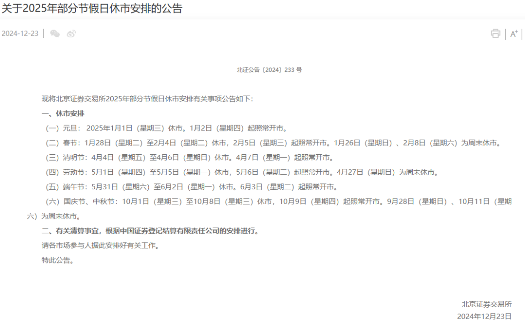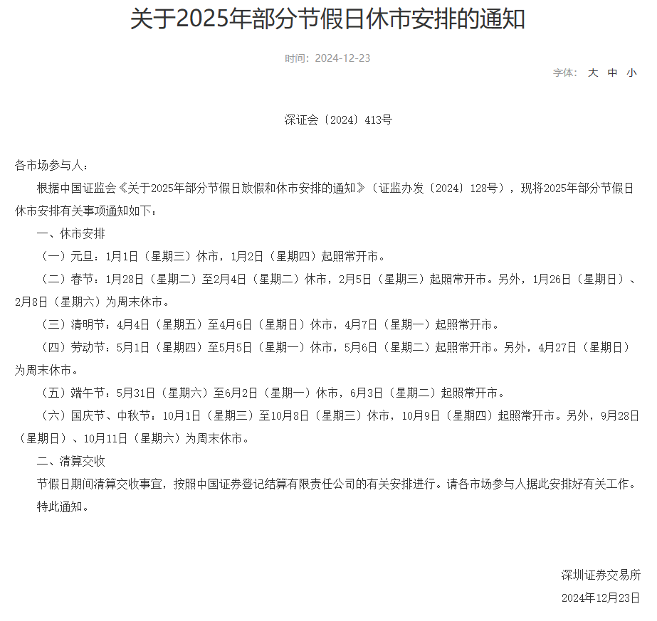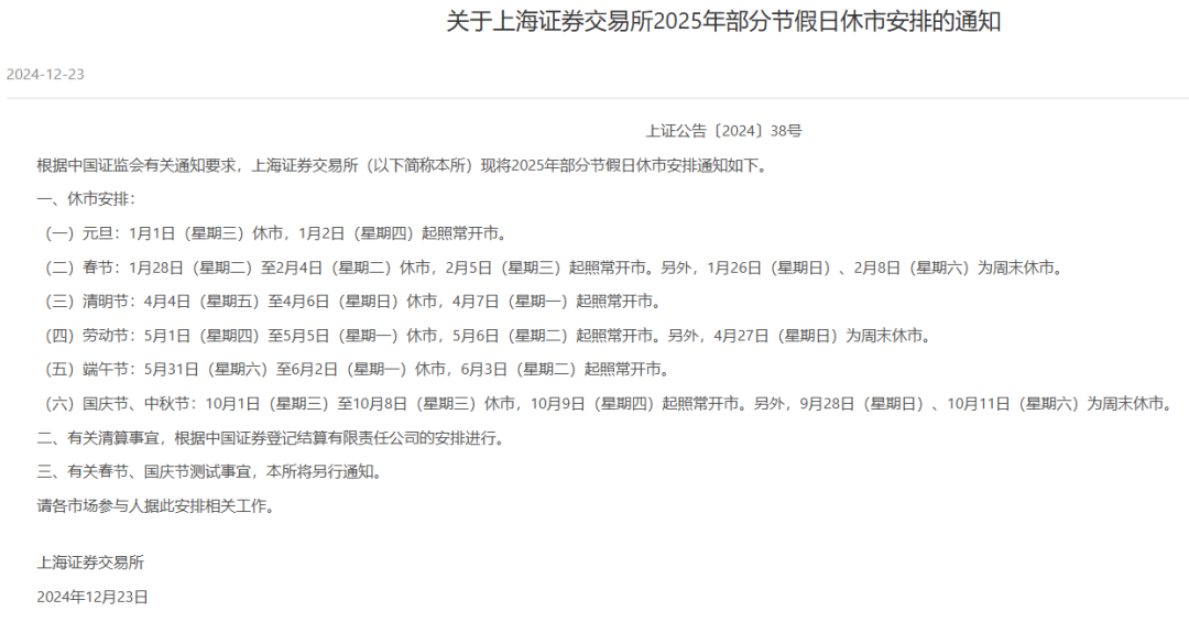 2025年休市安排公布!