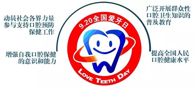 建立“全国爱牙日”是中国开展群众性口腔健康教育活动的一个创举,是推动我国牙病预防保健事业发展的一项重要举措。龋齿已被世界卫生组织列为心血管病和癌症之后的三大重点防治疾病之一。因此每年的9月20日被定为“爱牙日”。