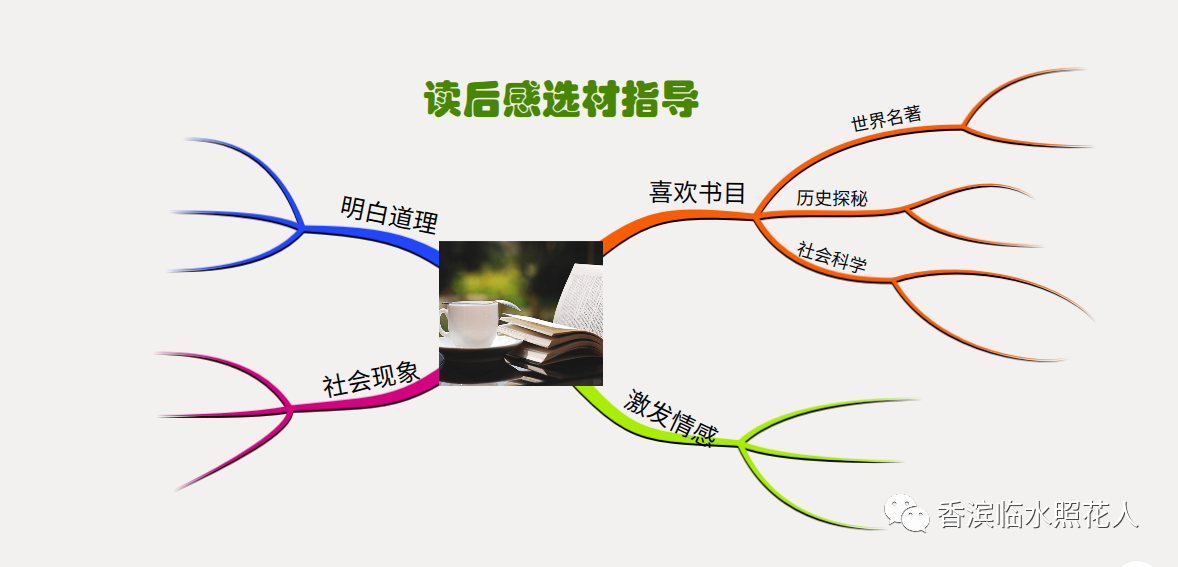 2、通过思维导图的学习,明确读后感的基本要求,帮助学生初步了解写读后感的选材技巧和构思方法。