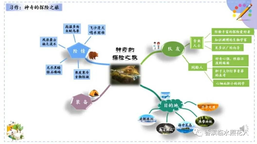 【思维导图“画”作文】部编教材五年级下册第六单元作文《神奇的探险之旅》的思维导图创意作文指导