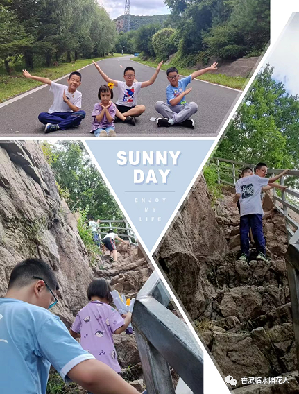 我和昊昊哥哥还有桐桐带着小月饼一起约好去爬山。我们开在崎岖颠簸的道路上,但丝毫没有影响我们的心情,一路上玩得不亦乐乎。https://mmbiz.qpic.cn/mmbiz_jpg/EAg59nDjynDGviboRh1N7ArFU2q2tOSFpnoFxlJo283wj5sHNu110nkanRZR4UARxJ8dxl2YFtLaJvV29svwmDA/640?wx_fmt=jpeg&wxfrom=5&wx_lazy=1&wx_co=1来到山脚下,潺潺的小溪叮叮咚咚地流淌着,远看,一座山挨着一座山,绿树包裹着群山,就像美丽的山水画。我兴奋不已,我心想:我一定要爬到山顶!正当我想得出神,小伙伴们已经跑到了我的前面,我快步跟了上去。