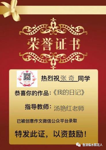 欢迎关注赏读孩子们的创意作文。喜欢他们的作品,就为他们点赞吧。孩子学会写作,能把自己的所见、所闻、所感,真实地记录下来,这就是我们最欣慰的。我们期待着他有更大的进步!