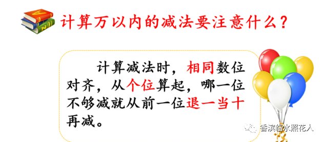 特别注意:中间是0的退位减法,例如:309-189;1000-428等