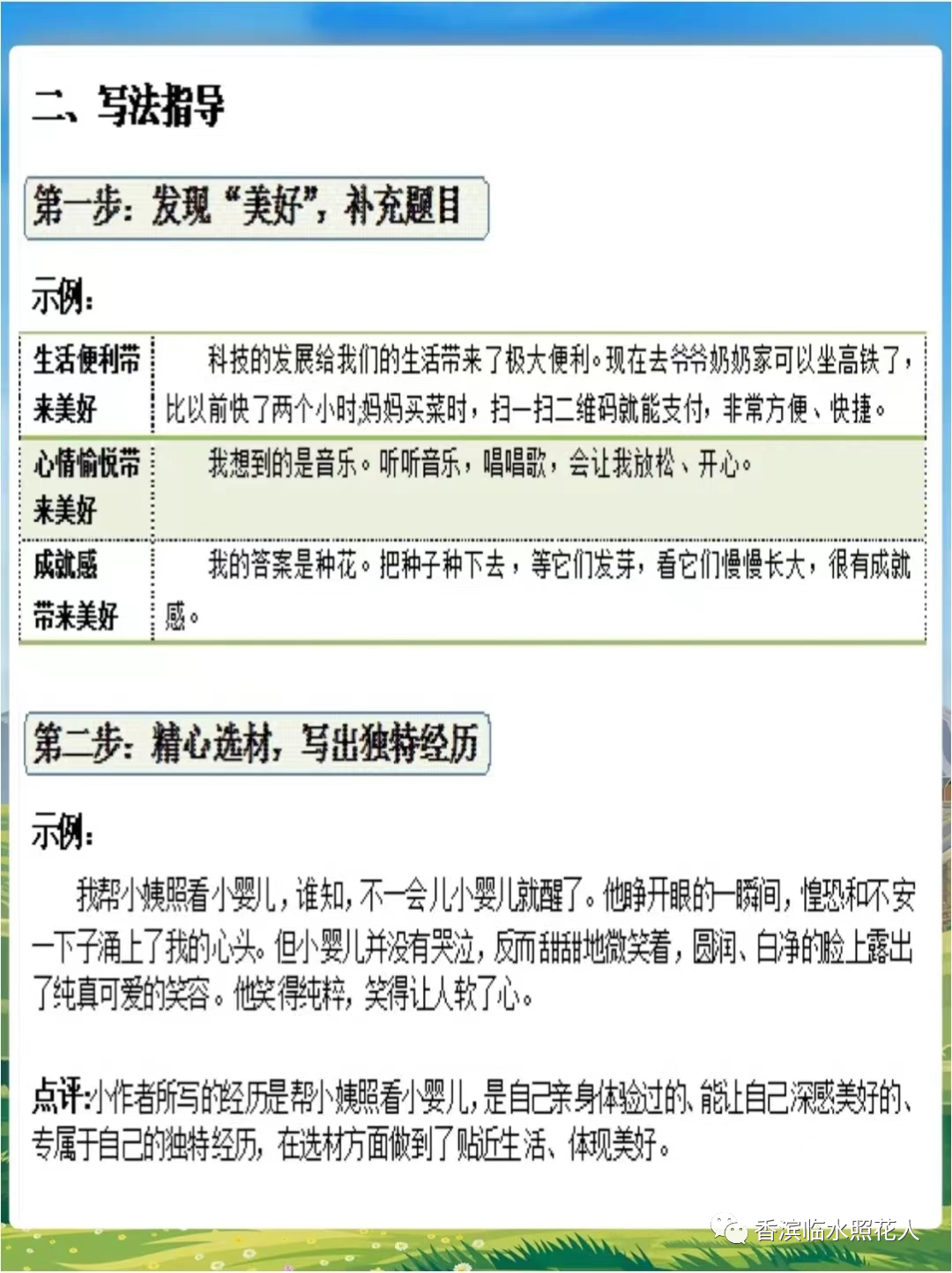 1.把习作题目《—— 让生活更美好》补充完整。横线处补充的内容很宽泛,可以是所给的八个话题“微笑、诚信、梦想、创意……”中的任何一个,也可以写其他话题。