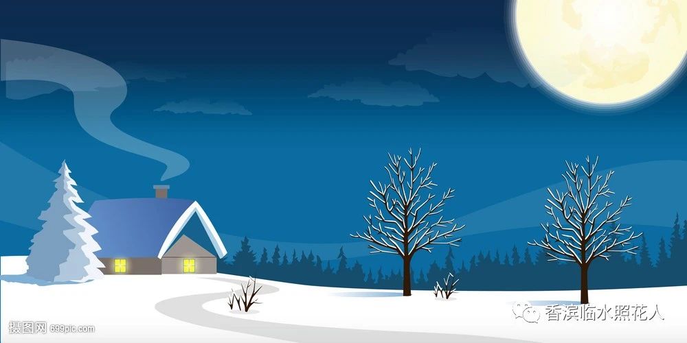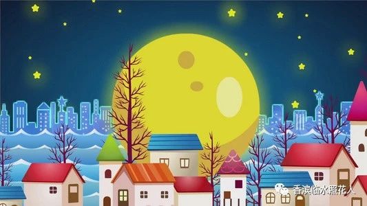 月亮慢慢地爬上了树梢, 月亮皎洁地看着这温暖的画面,月光,照亮了整个村庄……