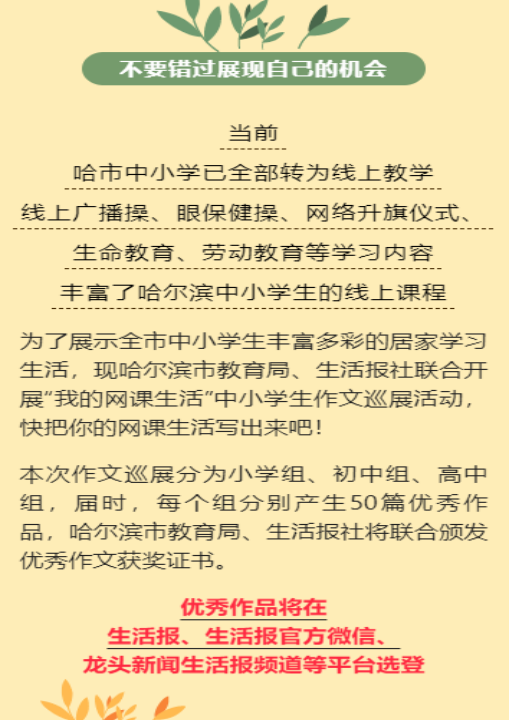 2、作品内容应与当前为防控疫情而采取的居家学习生活有关,积极向上。