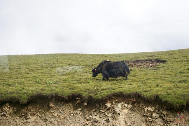 小娘子在写米拉山口时讲过,树木在海拔4150米以上就无法生长了,能存活的是苔藓类的植物,而真正的牦牛是生活在海拔4500米以上。所以翻越5030米的甘巴拉山口的时候,车窗外又可以看到“留着刘海,穿着短裙”的纯种牦牛了。