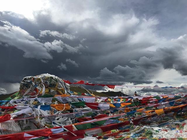 羊卓雍措山口附近,大大的五彩经幡迎风飞舞。按藏族人的说法,五彩经幡在神山上每飘扬一下,就象征着吟诵了一遍经文,会将藏民们虔诚的愿望传达到上苍。