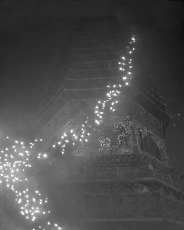 摄影师林舒把镜头对准这些夜晚中的古建筑,按下快门。十多分钟的长曝光中,周围静悄悄的,只听得到蝉鸣声微弱地起伏,时间忽然被拉得很长,很长。