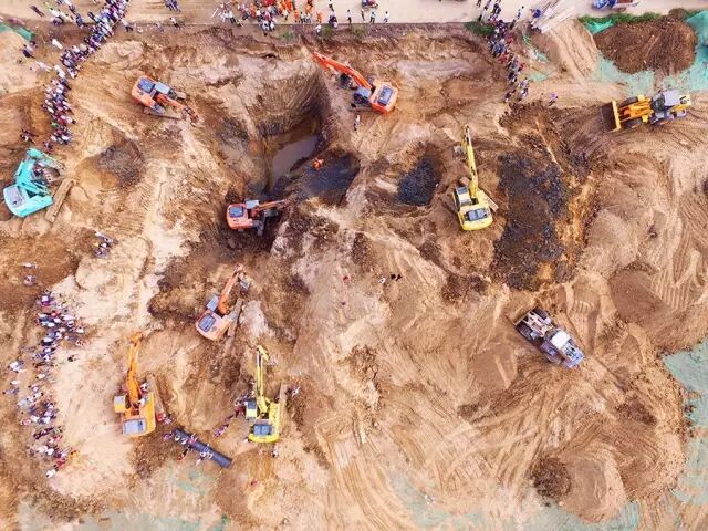 9月2日上午9点多,陕西西安灞桥区一名一岁多的小男孩不慎坠入约40米机井中,被卡在井下12米左右位置。消防人员经过10小时的紧张营救,成功从这口井口直径仅30厘米的深井中救出孩子。图为营救现场。