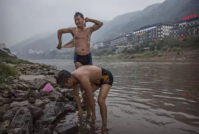 赤水河沿岸的生态是Kevin此次拍摄的重点。茅台镇人每天的生活,都和赤水河息息相关。他们在修成的现代化走道和广场上散步,在赤水河畔洗澡,在河边清理渔网,或每天乘坐渡船上下学……