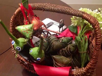 前天,门铃响,一篮粽子带着奶奶妈妈和姐姐们的味道来了,还把五月初五的端阳节气带进了我们的家:一把田中刀豆,二根长眼睛的茄子,一枝高高的芦草,各式手包粽子,两个避邪香囊以五色丝线吊挂,完全应了这段习俗小歌谣: