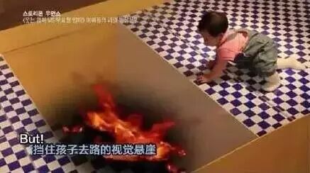 当妈妈展现出笑容,孩子看到妈妈笑容的瞬间,没有一点犹豫地朝着妈妈的方向爬去,之后还不敢过去的宝宝就这么轻松地通过了视觉县崖。