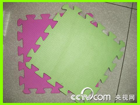 要自己制作这样的玩具,第一步是准备两种颜色的泡沫地垫若干。