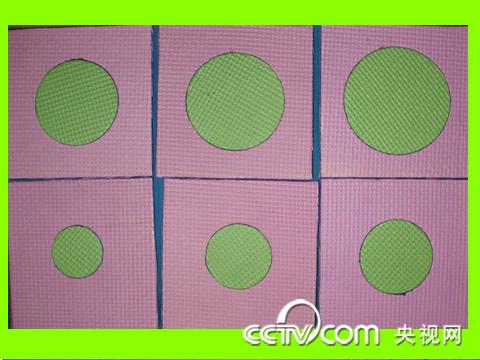 你可以选择一种颜色的地垫来制作大小不同的圆形,方法就是用一只大圆规或者其他什么可以画圆的工具,在泡沫地垫的背面画出大小不同的圆形,用剪刀把它们剪下来。