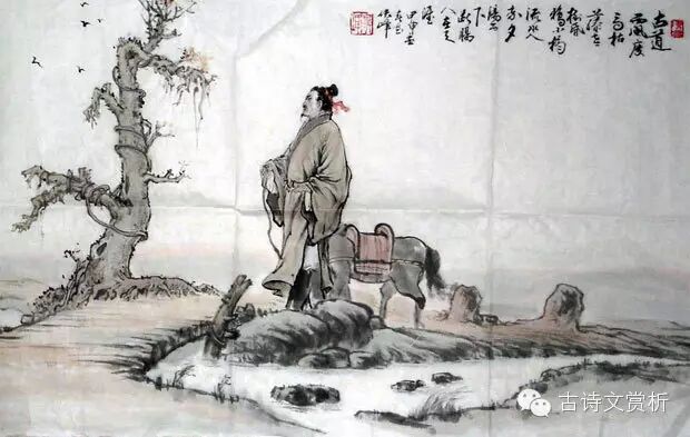 ⑶古道:已经废弃不堪再用的古老驿道(路)或年代久远的驿道。西风:寒冷、萧瑟的秋风。瘦马:瘦骨如柴的马。