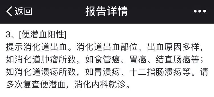 客户对于自己的健康状况相当自信,坚持说指标只是特殊情况。我于是将报告拿到几家公司做预核保,均追问复查情况。如果属于痔疮等原因导致,问题不大,但如果是消化道问题,核保结果>>>极有可能是延期。