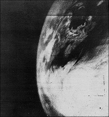 上图是第一张由气象卫星(Tiros)拍到的地球照片,拍摄时间为1960年4月1日。