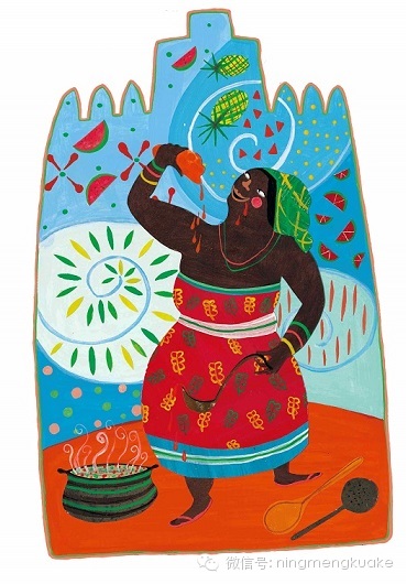 可是,有一个叫奥萨托的女人,却永远都不知足,总是想着要更多,而且她超爱吃。她先是拿了一大块金黄色的天。嗯,是又甜又黏的菠萝味。很快,一大块天就进入了她的肚子里。然后,她又舀出一块炖好了的香辣可口的天。噢,太好吃了!她把盘子端到嘴边,一口气把汤和天囫囵吞进了肚子里。很快,她的胃就被撑饱了,连脖子都通红的了。她松了松自己的棉袍。接下来该吃点什么呢?就那个精致的粉色天吧。一转眼,一块粉色的天又被她吞下了肚。啊!西瓜味!果汁流到了她的下巴。