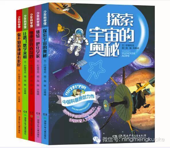 《少年科学馆》是一套科普书,适合小学二年级以上的孩子自主阅读。全套5本,内容覆盖数学、物理、化学、天文和地球科学。包括:《让路!数学来了》、《物理世界真奇妙》、《体验一把化学家》、《探索宇宙的奥秘》、《你不知道地球有多好》5册。