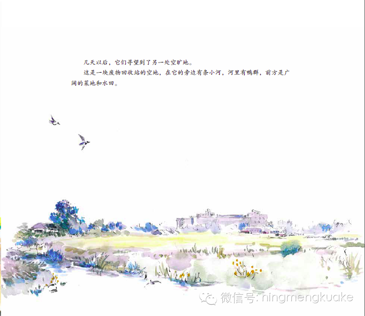 “寻望”这个词用得多好啊!寻和望……是在说鸟吗?仅仅是在说鸟吗?当我们看到这个画面,清新而宽广,宁静中孕育着希望,多希望它只属于小千鸟。哦,可是看到这是一片废物回收站的空地,我们知道,作者不仅仅是在说鸟。