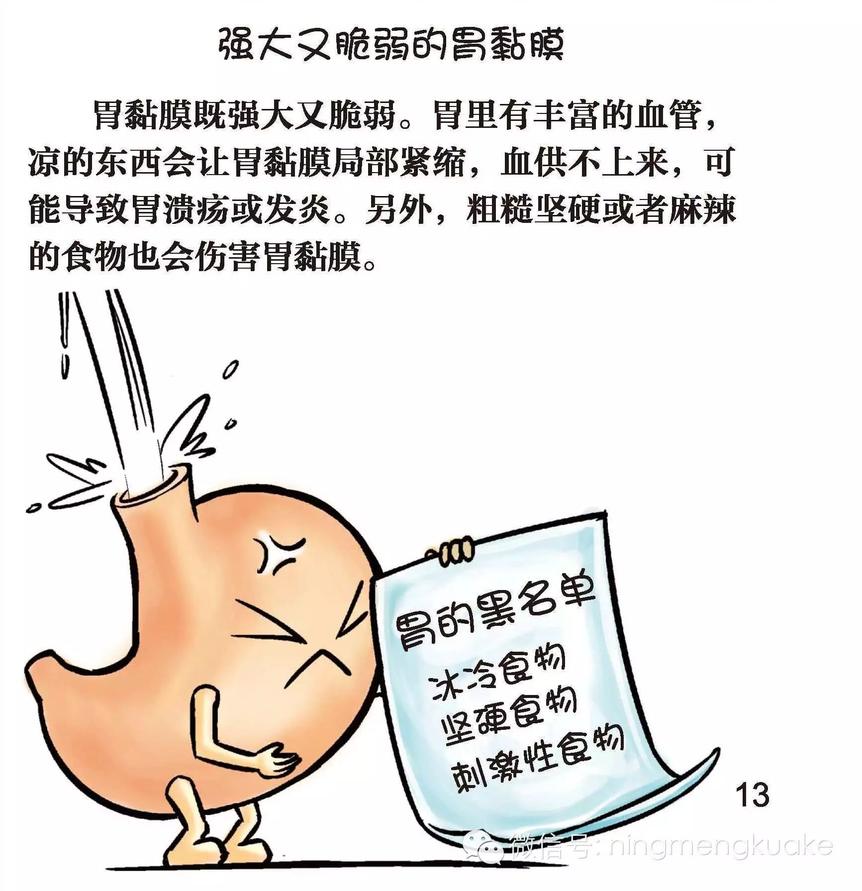 强大又脆弱的胃粘膜:原来胃粘膜也有三怕:怕冷、怕刺激性食物、怕粗糙坚硬。不光是我孩子看了这张图后,自觉抵制冷食,就连我在故事屋,给我们社区的孩子讲完之后,很多孩子都懂得不吃刺激性食物、不吃凉的东西,吃饭要细嚼慢咽。