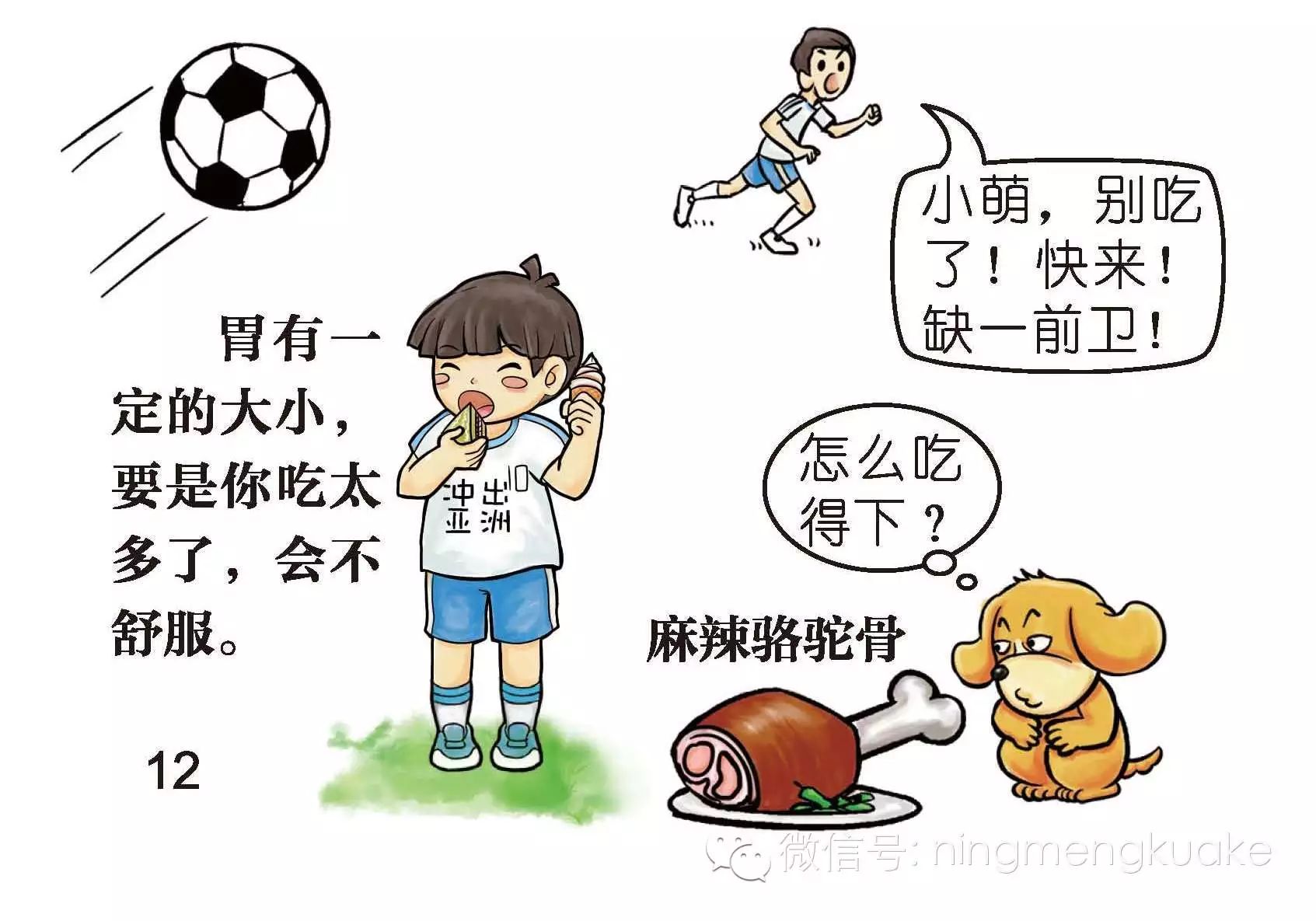 这时候告诉孩子,胃有一定大小,如果吃得太多,会不舒服。这个地方我在讲的时候,会停一下,让孩子笑过一阵儿后,自己想一想。然后问孩子: