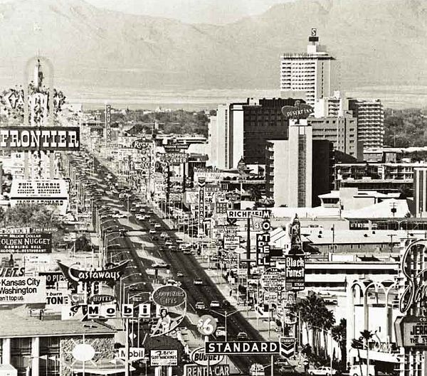 此时的拉斯维加斯已经发展成一座热闹的沙漠汽车城。密集的赌场夜总会、破旧的汽车旅馆、艳俗的霓虹灯、醒目夸张的街边路牌构成了奇特的城市肌理,那是一种