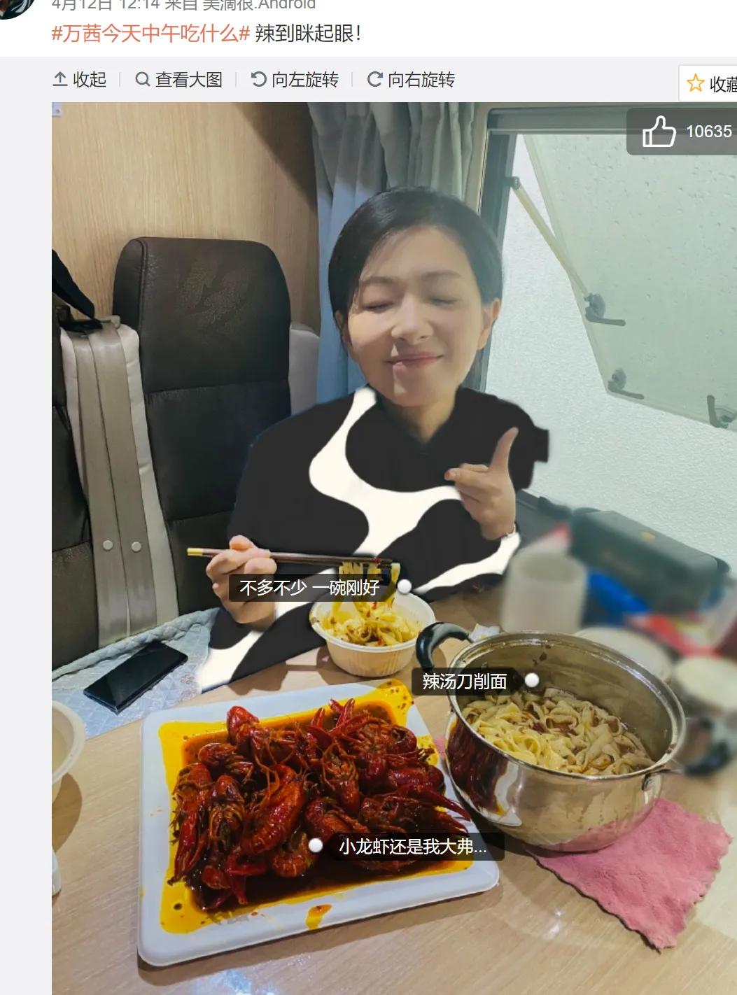 于是,越来越多的网友们开始对万茜每日的菜单开始感兴趣啦,有网友说,每天中午打开微博看一眼万茜又吃了什么好吃的,已经成为了一种习惯。看到万茜有这么好的胃口开心吃饭,相比网友们也会有了干饭的冲动吧,反正小编看了小龙虾后,就不小心没忍住点了外卖解馋……