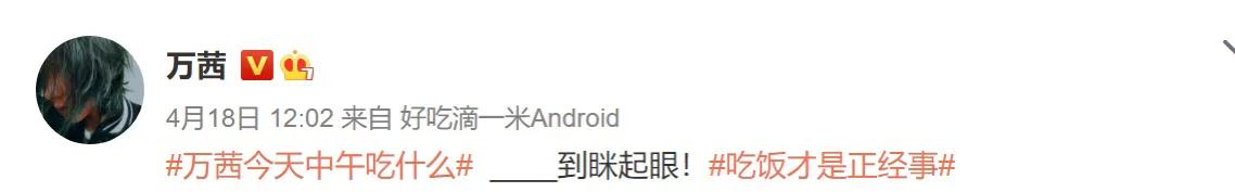 著名美食家蔡澜曾在《随心随意去生活》中写道:“活着,大吃大喝也是对生命的一种尊重。”万茜每天晒出美食,配以眯眼享受的开心表情,真的是一个非常治愈的画面。即便有再多的烦恼、不开心、压力,我们都需要吃饭,认真“干饭”,才能真正享受生活,也许,这就是万茜这次日更给粉丝们带来的一份温暖的触动吧!