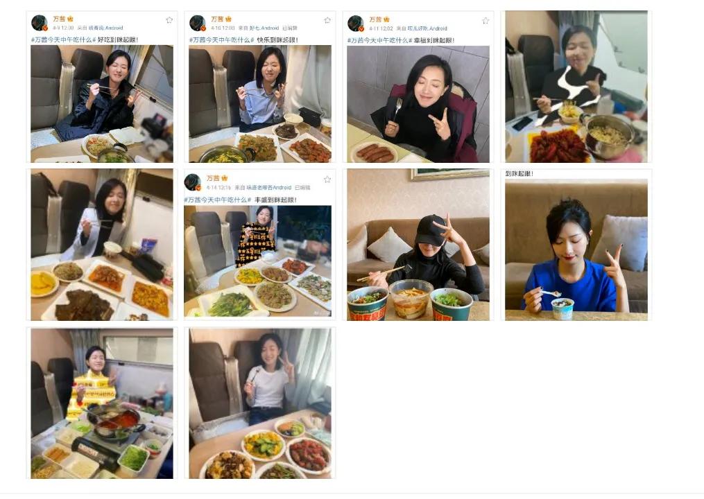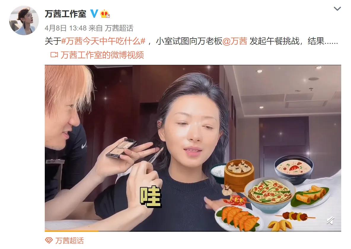 一开始大家以为这是万茜的随性一发,没想到竟然是一个眯眼干饭图系列!原来,这个系列活动是源于此前万茜工作室向万茜发起的一个午餐挑战,万老板可真是说到做到哈哈。