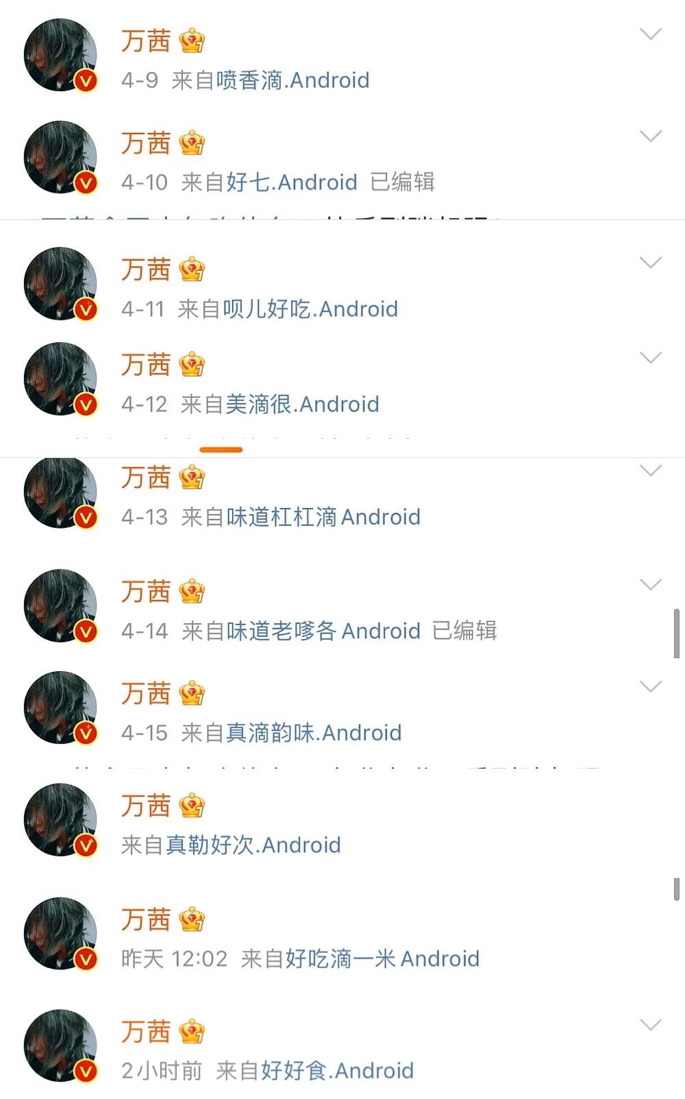 每天中午,万茜都会在微博上更新自己吃的饭菜,还很用心地给每一道菜打上标签,每天的表情,都是一脸满足地眯起眼睛,一看就是在享受美味的样子。