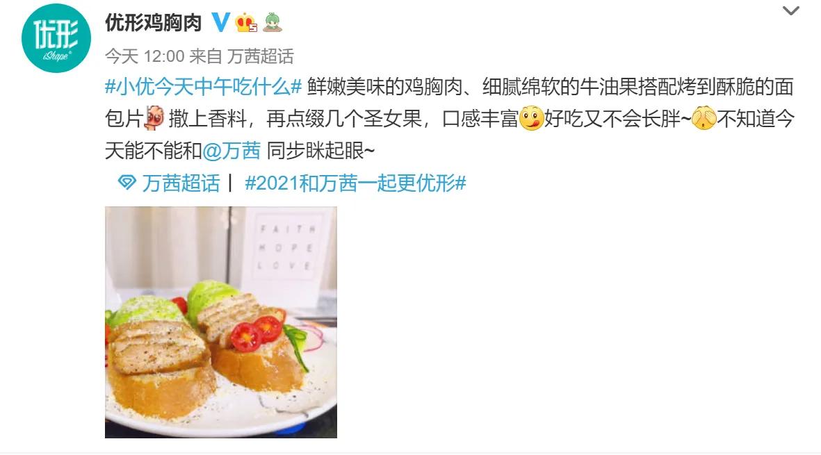 此外,万茜还借机晒出了自己代言的优形鸡胸肉,“好吃不怕胖”的鸡胸肉摆在餐桌上,看起来就特别美味人,让人胃口大开!