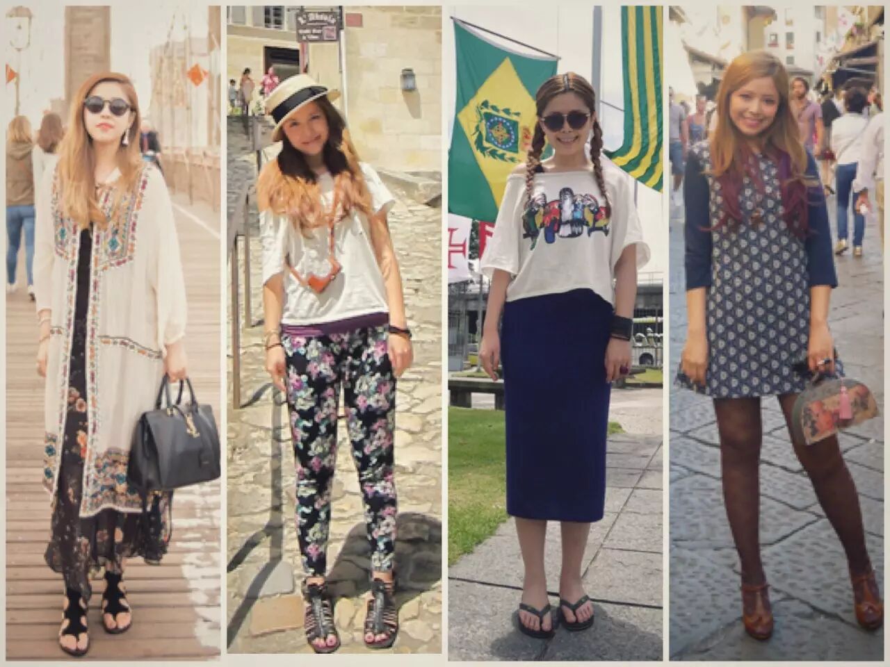 这个问题很简单。首先不要选择运动装、冲锋衣、同样图案的情侣装、全身粉。我会先做好功课,看好当地民俗服饰特色进行穿搭,和整体环境无缝对接。举个例子,巴西的国鸟是鹦鹉,我就会穿鹦鹉图案的T恤,搭配羽毛配饰的耳环;在老挝就选编织风;去奥地利就身披深红色,入乡随俗只需一点功课~