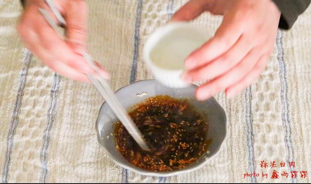 4蒜泥可以用量稍大,肉汤不要倒掉,可以取适量拌入和稀释料汁。