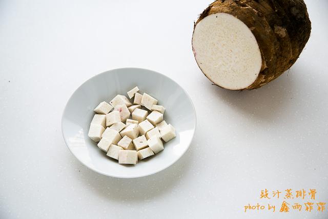 11芋头在盘子底铺放一层,排骨放在芋头上。