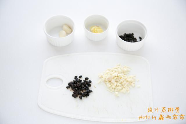 3、豆豉拍扁即可,如果剁碎会影响排骨成品的颜色。