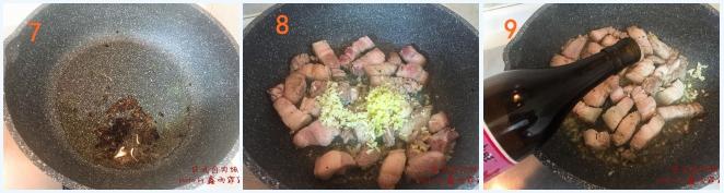 9香味出来后,转中火,加米酒翻炒一会儿。