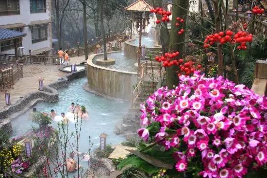 景色一流,就坐落在嘉陵江观音峡河畔,室外的温泉比较少,大多都在室内。