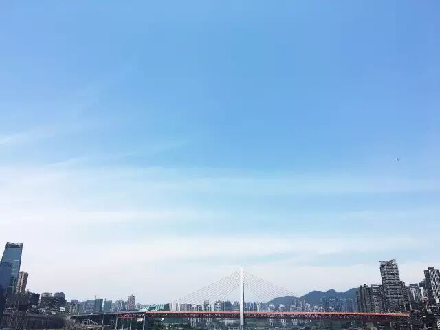 天空透着宁静祥和,像梳理过的羽毛。这就是我们引以为傲的重庆蓝~