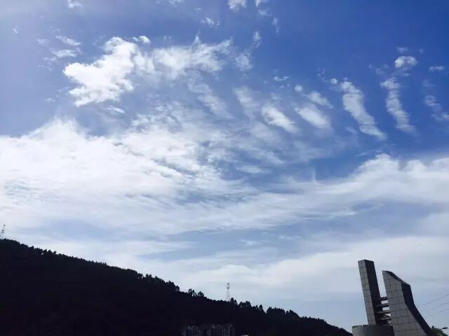 天空呈现不同层次的蓝色,云朵更是把这种蓝衬托得无比深邃与多情。此时此刻,只想说一声,我在重庆,岁月静好!