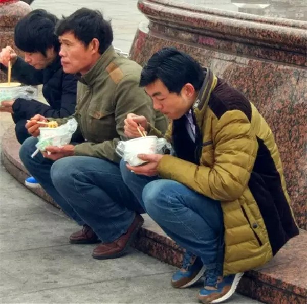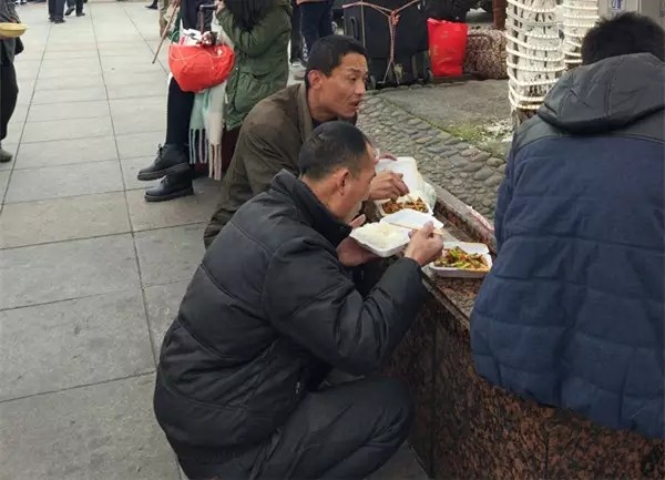 ▲为了准点赶上回家的火车,有的人一早就到了车站,还没来得及吃上一顿饱饭,只能就着方便面或者快餐填饱肚子。