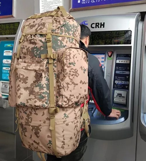 ▲一个汉纸单肩扛起行囊,回家的步伐坚定而沉稳。