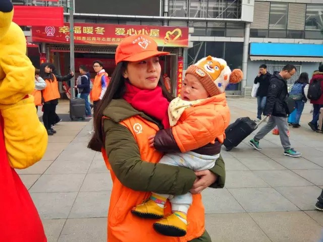 ▲在北站的南广场,我们会看见很多着橘色服装的志愿者穿梭其间,他们大都是在校大学生,照片中的两位志愿者就是在校的大一学生,他们其实还尚未涉世,脸上满是青涩,他们的志愿工作会持续整个春运期间,他们牺牲了自己与家人团聚的时光,而让更多在异地的人能够返乡团聚,但在他们的眼中,这是他们人生中一件非常有意义的事。