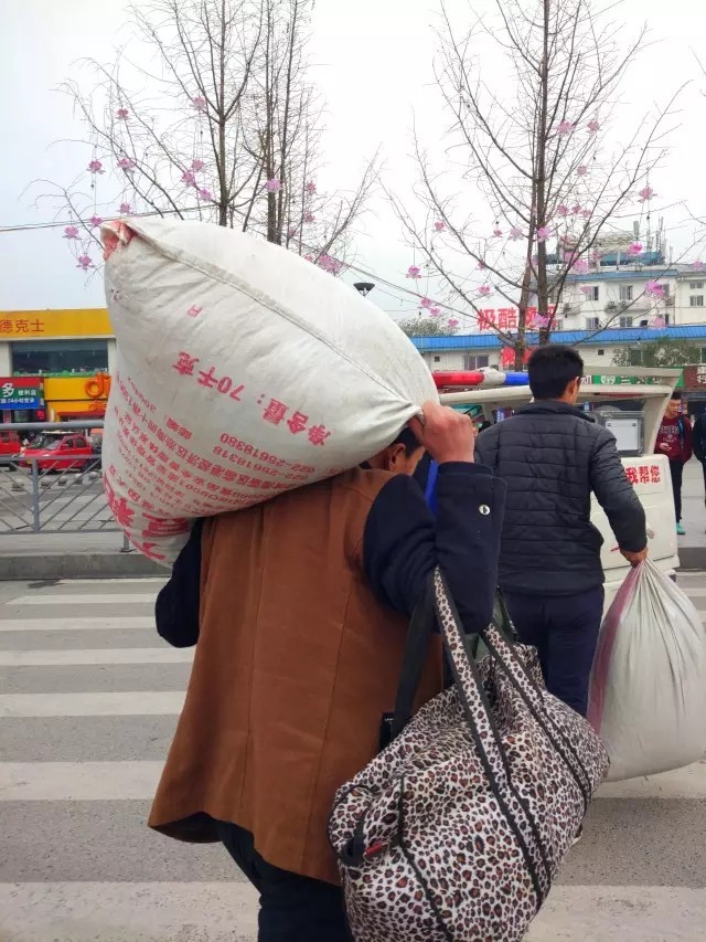 ▲回家的行囊虽然很重,但是依旧阻挡不了归心似箭的迫切。