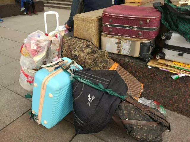 ▲这位大姐甚至带着棉被,晚上在广场上露宿。或许她是途径重庆从这里转车,或许她一去就不再回来。