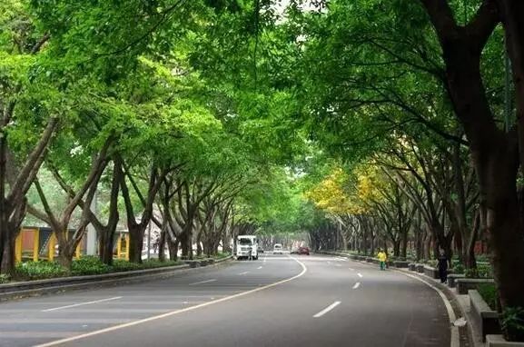 两旁绿树参天