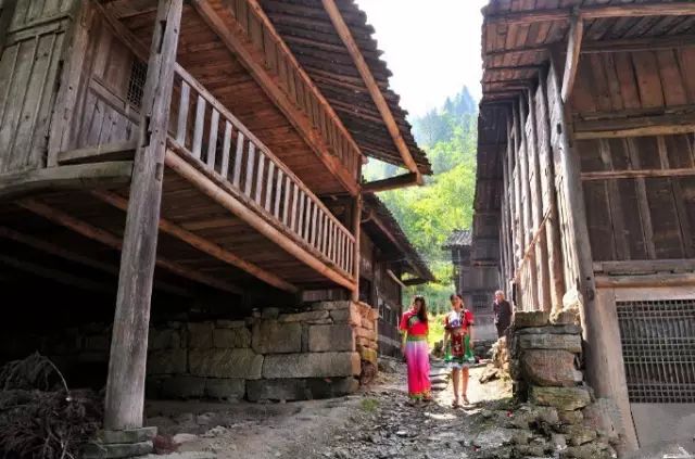 还有寨子里那一抹抹独具特色的藏蓝朱红,