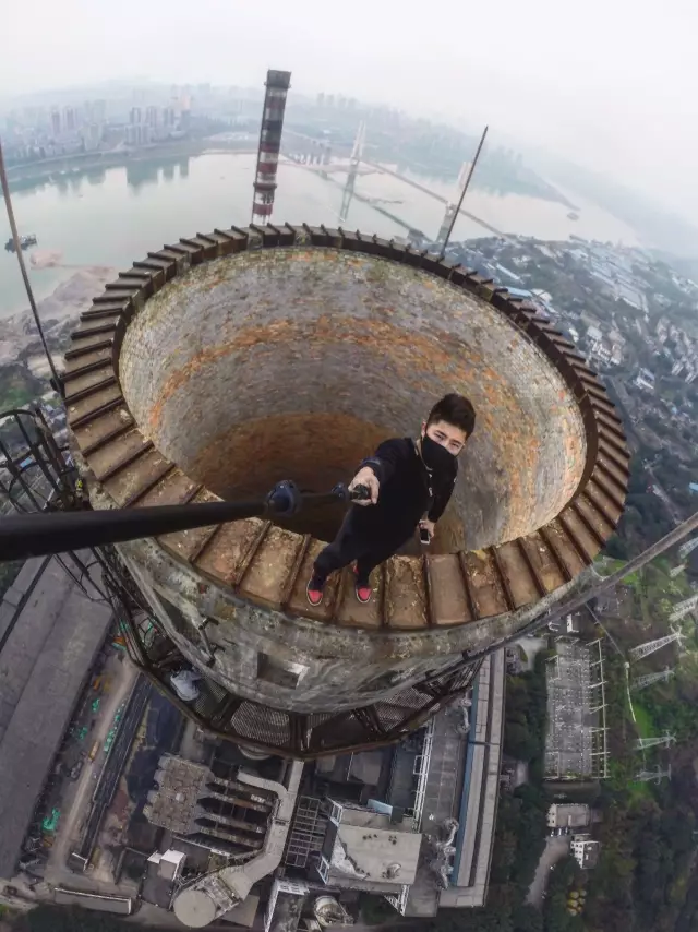 惊险,爬240米的大烟囱